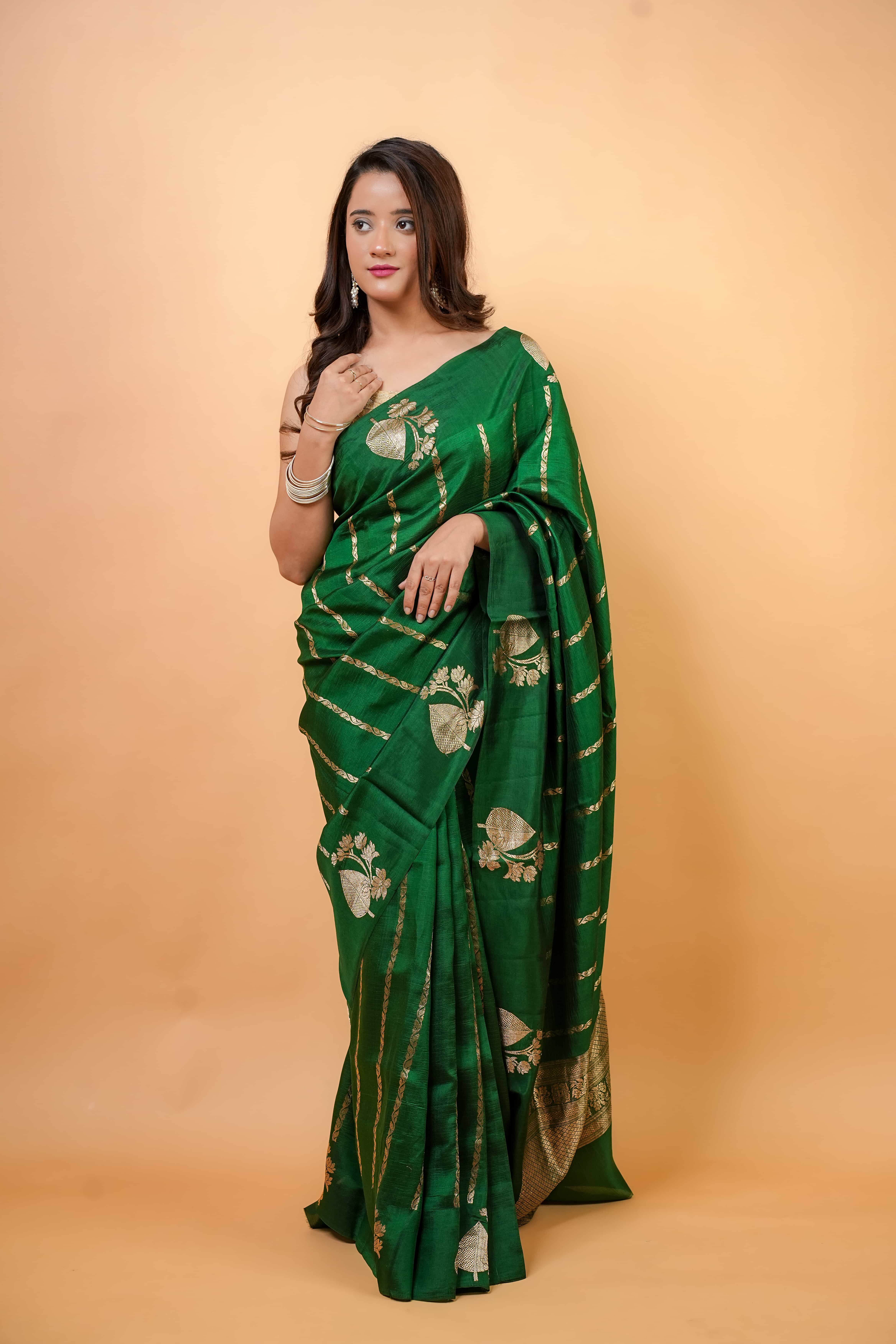 Green Banarasi Katan silk saree with Kadwa weaving